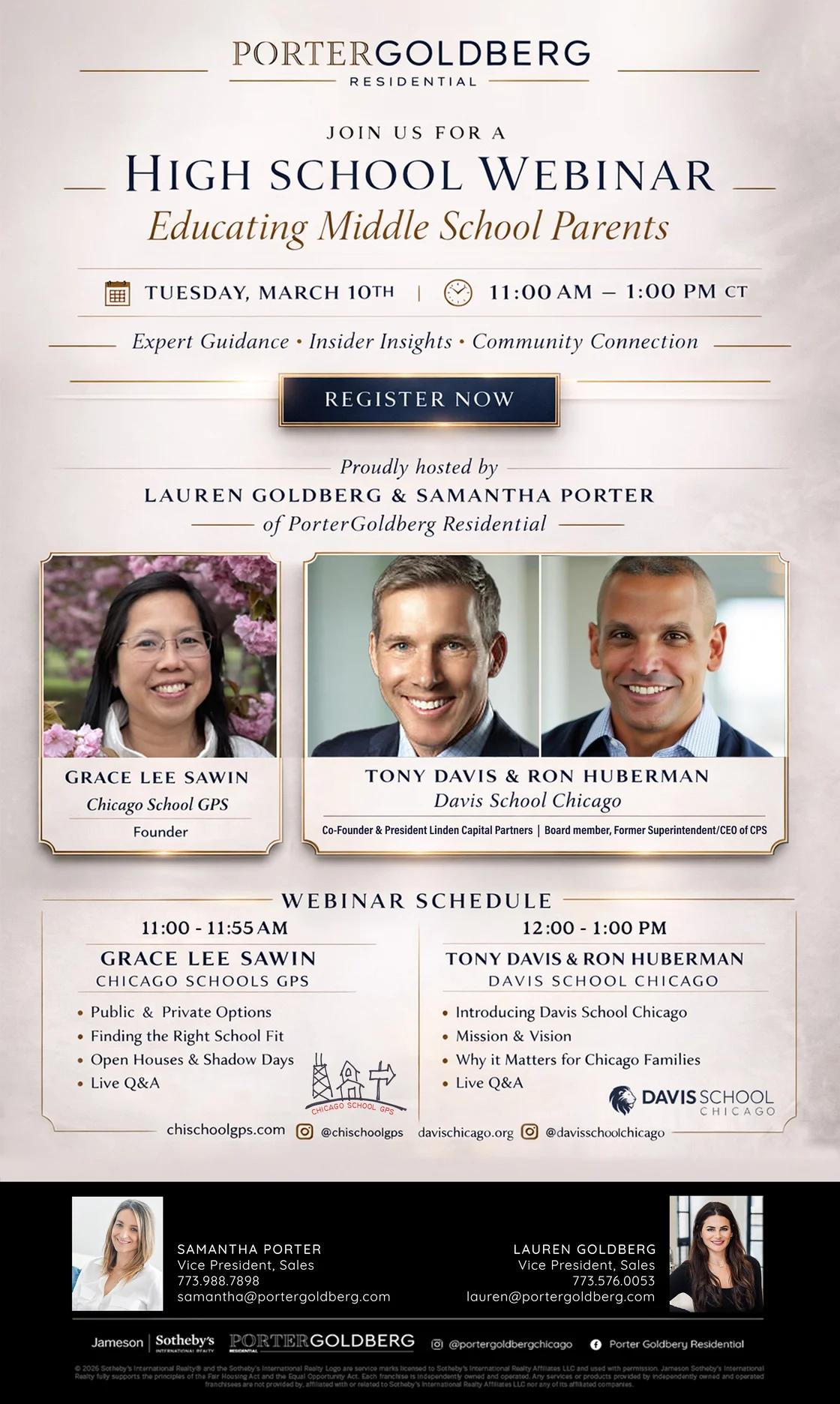 Upcoming Event March 10th– Education Webinar Presentation 11:00-11:55Grace Lee Sawin, Chicago Schools GPS 12:00- 1:00Tony Davis, Davis School, Chicago Register Here Porter Goldberg Newsletter Luxury Chicago Real Estate Insights Name(Required) First Email(Required) Enter Email Confirm Email Privacy(Required) I agree with the storage and handling of my data by this website. - Privacy Policy *